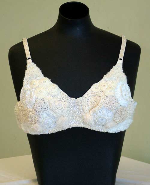 Bra adapted from Prudence Mapstone freeform design techniques in knitting and crochet