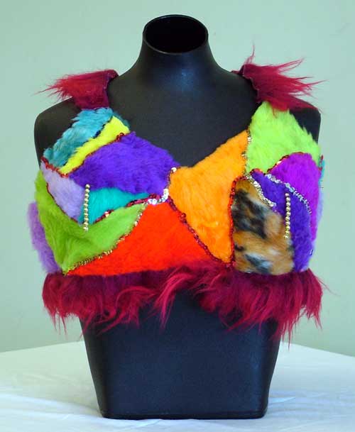 Judy Hogg - The warming Cups A crazy design of coloured fake fur fabric as one must keep ones boobs warm and trimmed with as much exotica that can be found. |