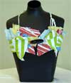 | Members of the Southern Cross Crazies discussion group and the Canberra Crazy Qulters, at the First National Crazy Quilt Retreat in October 2004 were invited to decorate a bra in order to raise funds for Breast cancer research. Voting by coin donation determined the winner to be Catherine Byatt's "The Mermaid". A parade compared by Dell Armistead made it a hilarious evening for all participants. Here are the photographs taken by Melody Lord of the 38 bras made for the parade held at the retreat. Some were bras were made for fun while others made statements. All celebrated health and life.