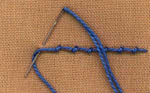 Insert the needle at a right angle, above the line to be worked and bring it out just below the line to be worked.